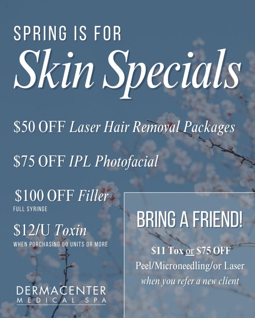 Each month, we feature exclusive offers to help you look and feel your best. From rejuvenating facials and laser treatments to seasonal packages and client favorites, our specials are designed to support your beauty and wellness goals at a great value.
